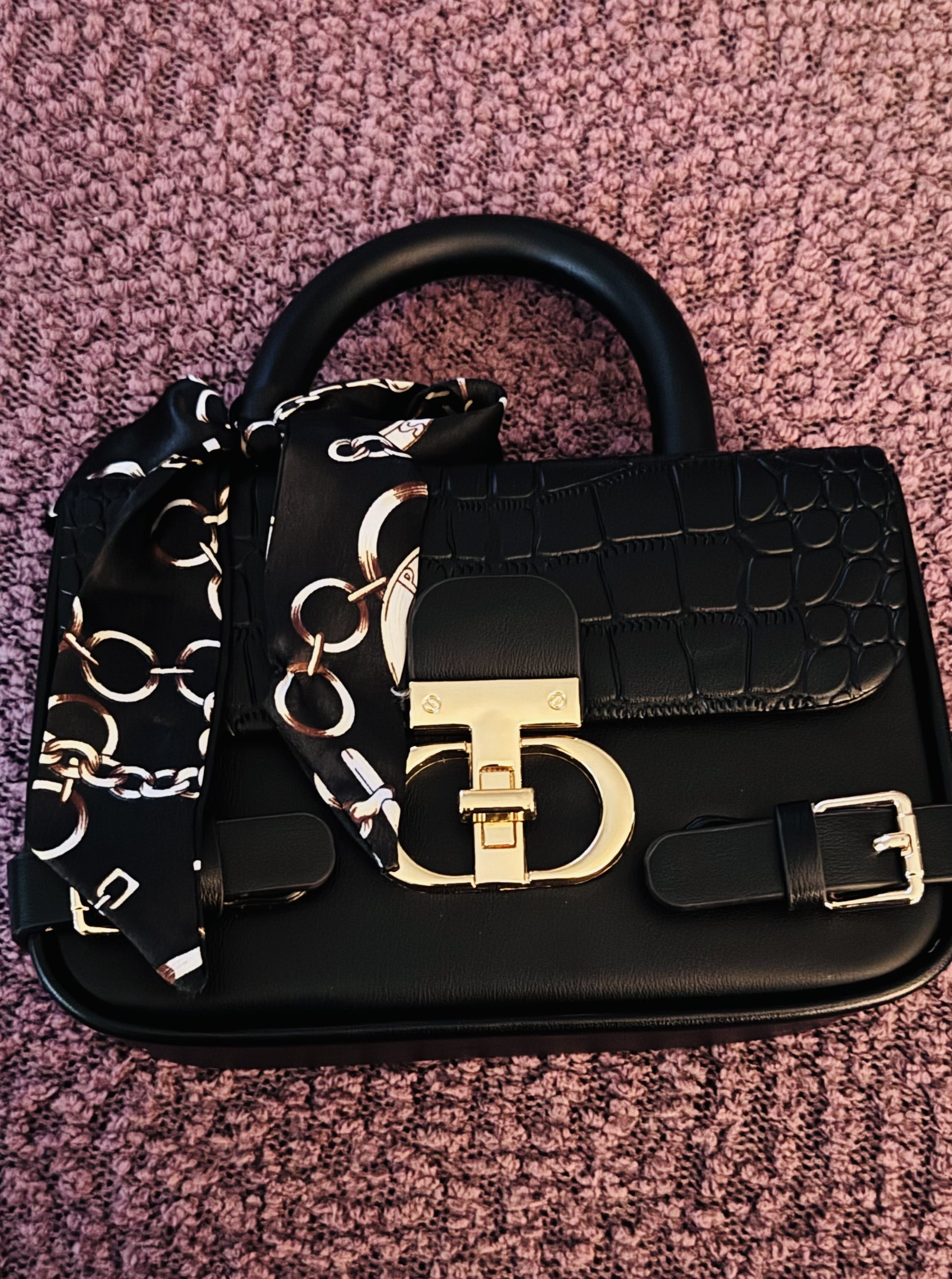 Features you'll love: Structured handbag in a classic nude beige tone with a chic scarf-wrapped handle for a touch of elegance tone hardware with a modern lock clasp adds sophistication and security.